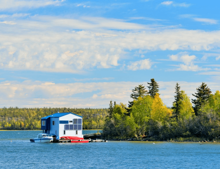 Imagine an island with just enough room for a house, a tree, and two wrought-iron…