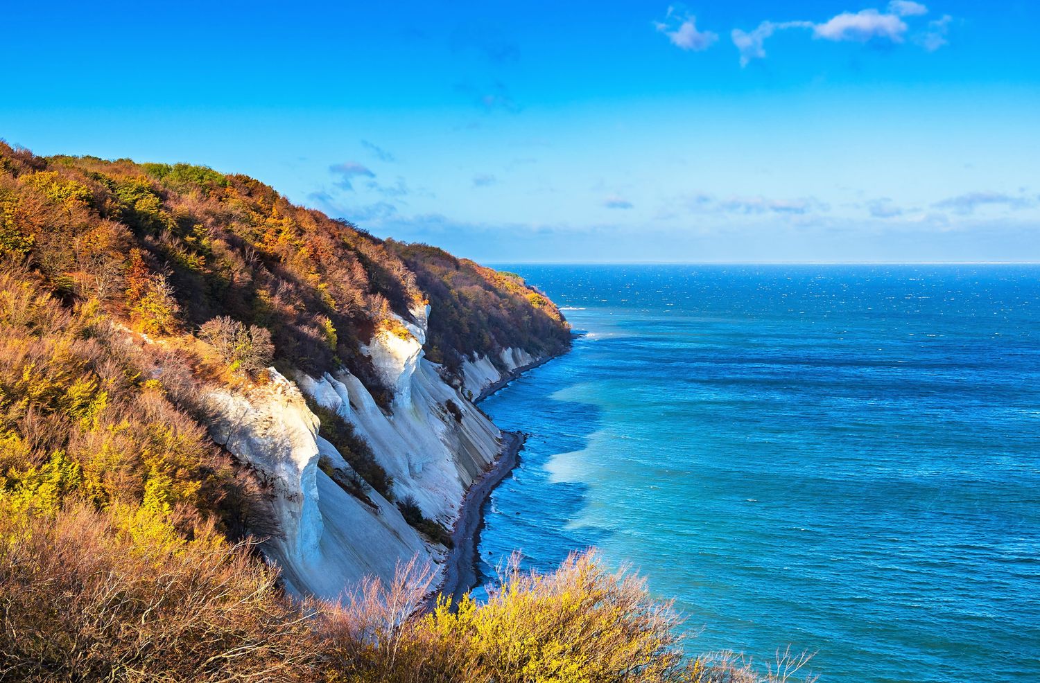 Surrounded by woodlands, pastures, ponds, and steep hills, the cliffs are famous as a vacation spot, attracting over 250,000 visitors each year. Its clifftops offer amazing views of the Baltic Sea, while the nearby Aborrebjerg Hill, one of the highest points in Denmark, provides an even more breathtaking view of the Danish countryside.